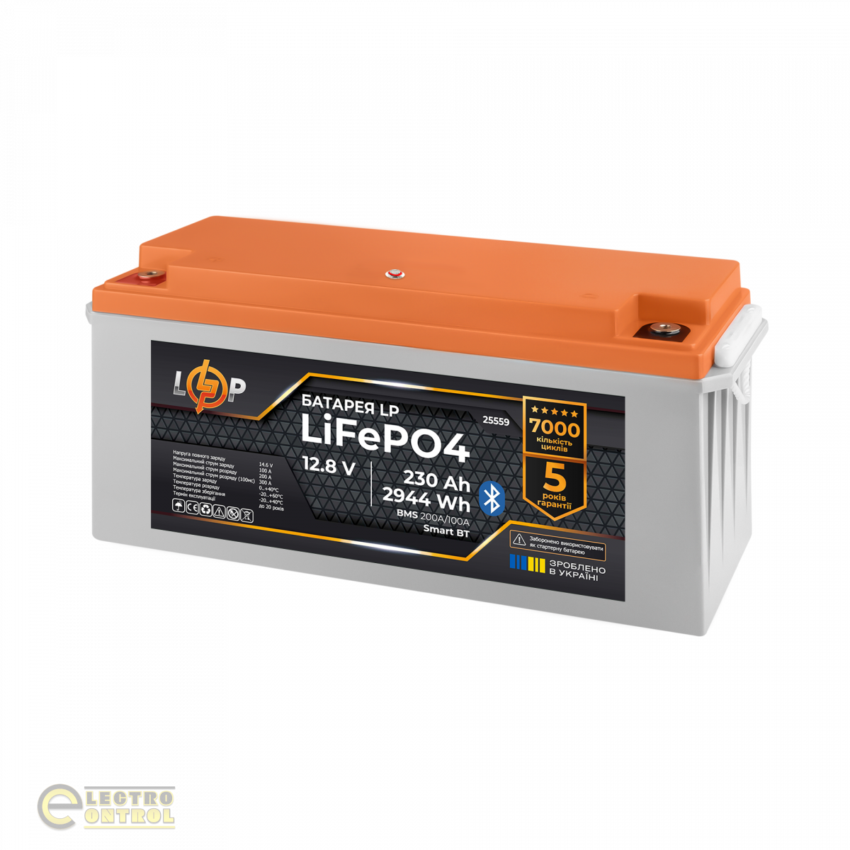 Акумулятор LogicPower LiFePO4 12,8V-230Ah (2944Wh) (BMS 200A/100А) пластик Smart BT