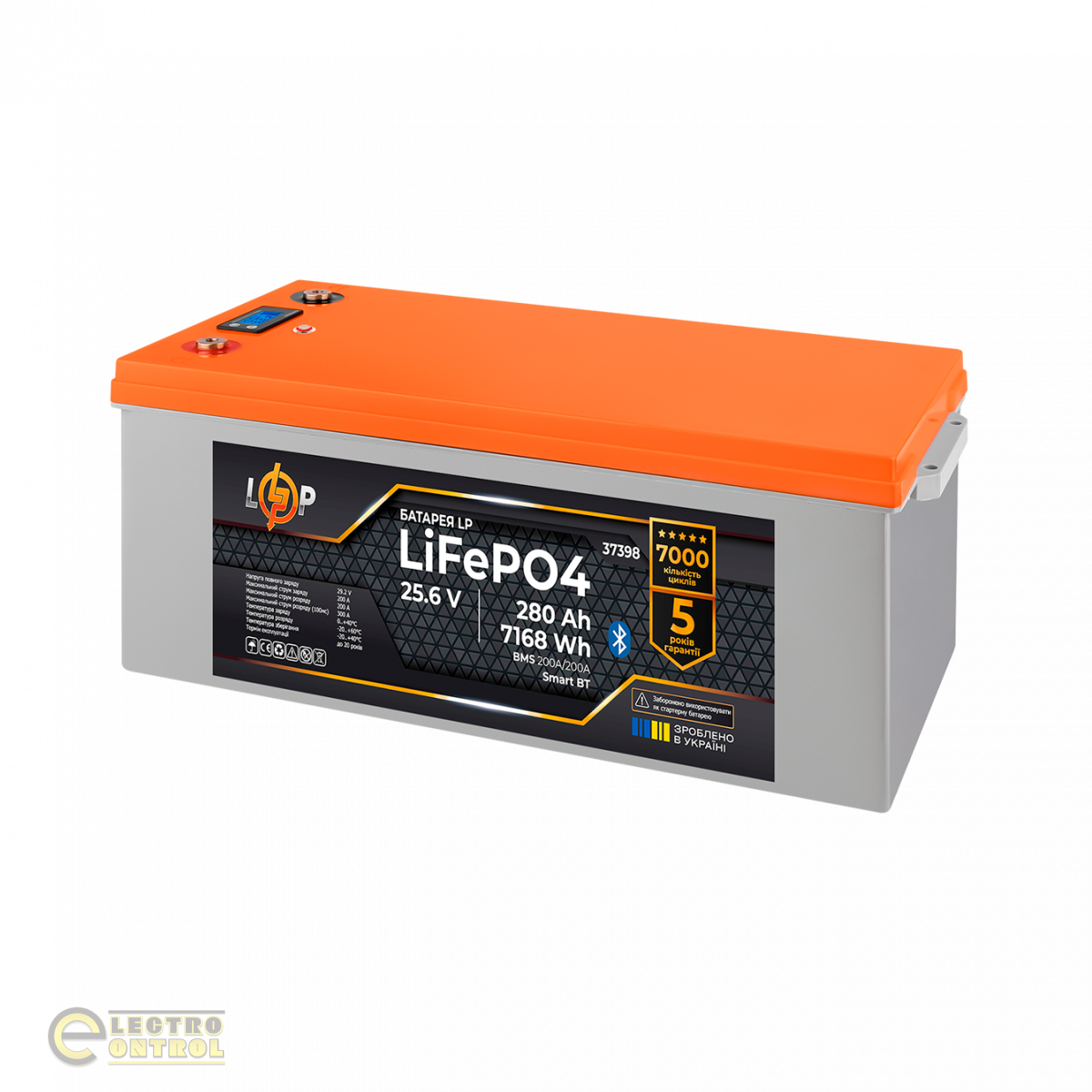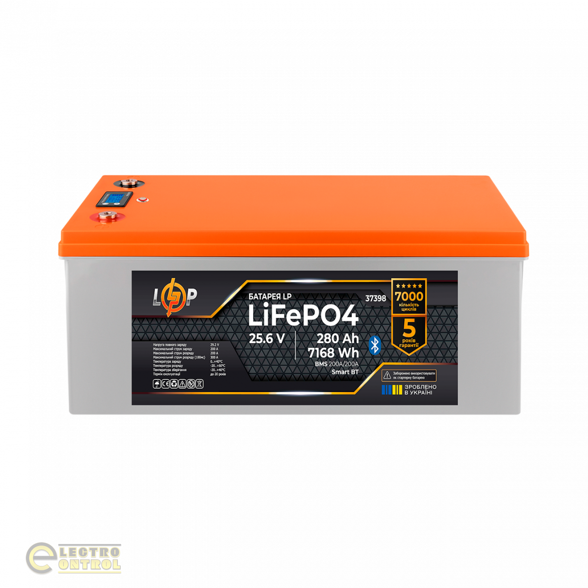 Акумулятор LP LiFePO4 25,6V - 280 Ah (7168Wh) (BMS 200A/200А) LCD Smart BT