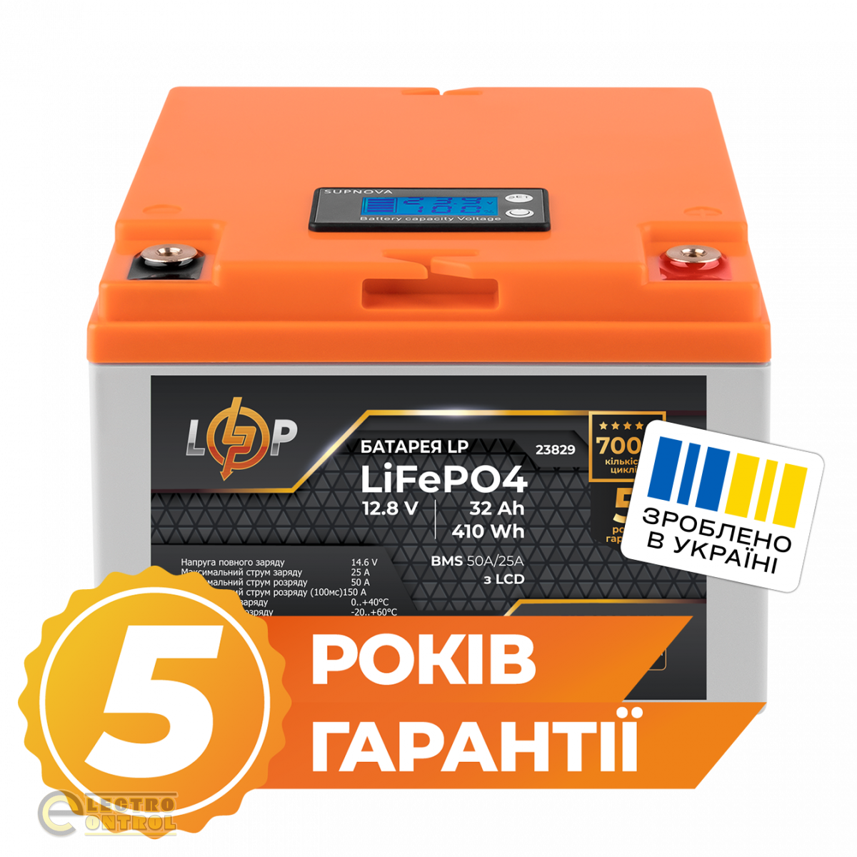 Акумулятор LP 12,8V - 32 Ah (410Wh) (BMS 50А/25A) пластик LCD заборонено використовувати як стартерний АКБ в автомобілях! Не рекомендовано під'єднувати до ДБЖ!