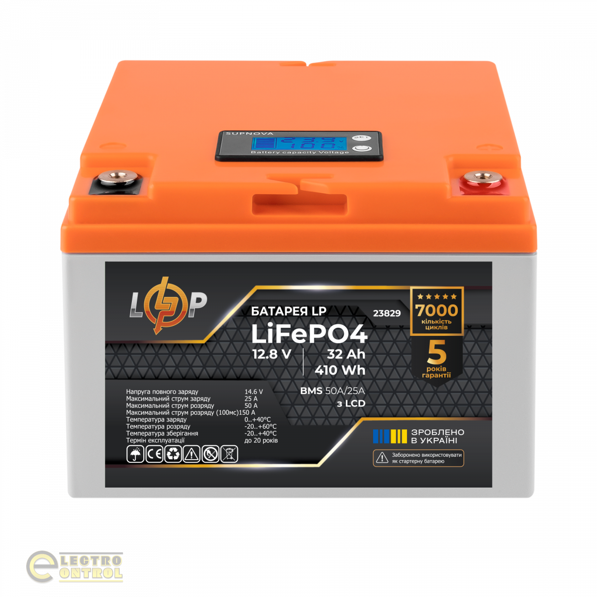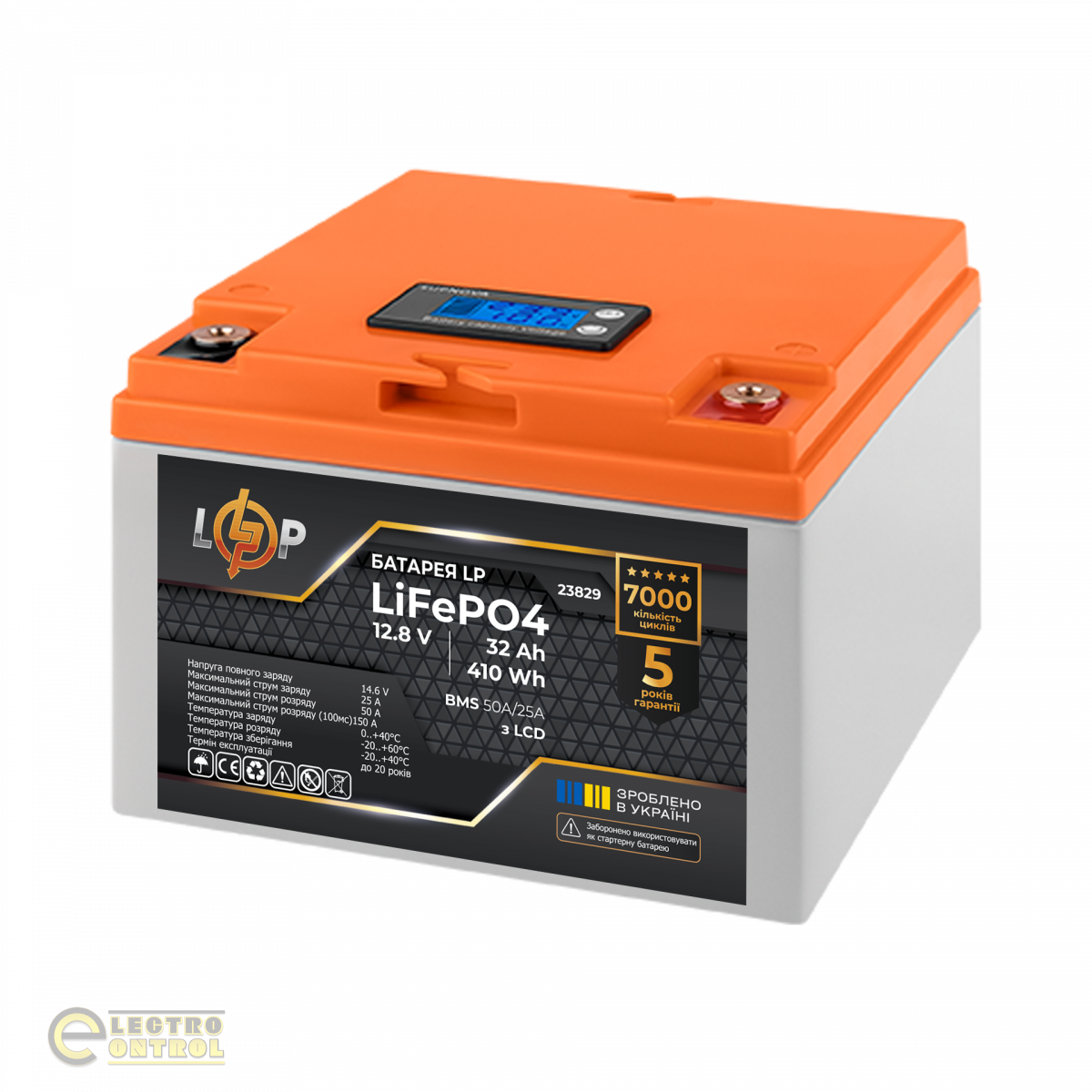 Акумулятор LogicPower LiFePO4 12,8V-32Ah (410Wh) (BMS 50А/25A) пластик LCD