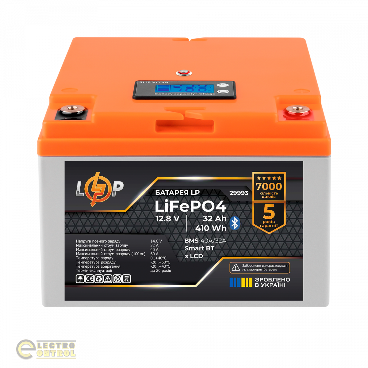 Акумулятор LogicPower LiFePO4 12,8V-32Ah (410Wh) (BMS 40А/32A) пластик LCD Smart BT