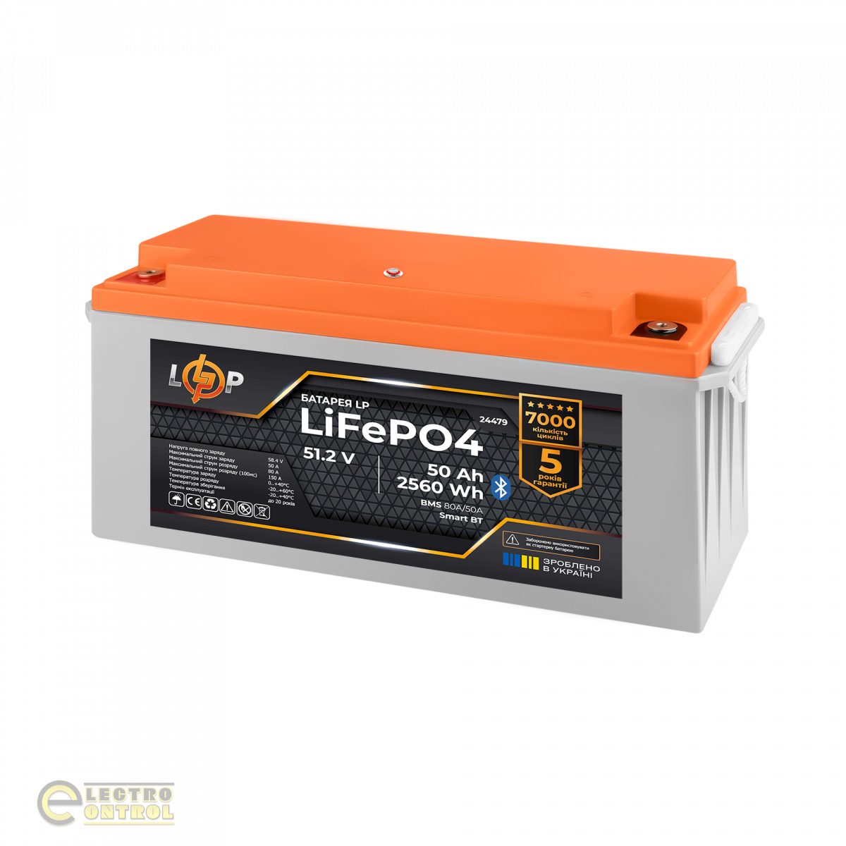Акумулятор LogicPower LiFePO4 51,2V-50Ah (2560Wh) (BMS 80A/50А) пластик Smart BT
