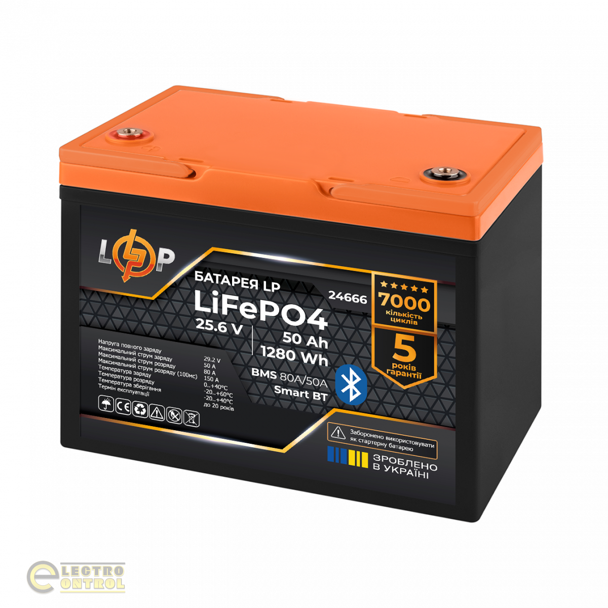 Акумулятор LogicPower LiFePO4 25,6V-50Ah (1280Wh) (BMS 80A/50А) пластик Smart BT