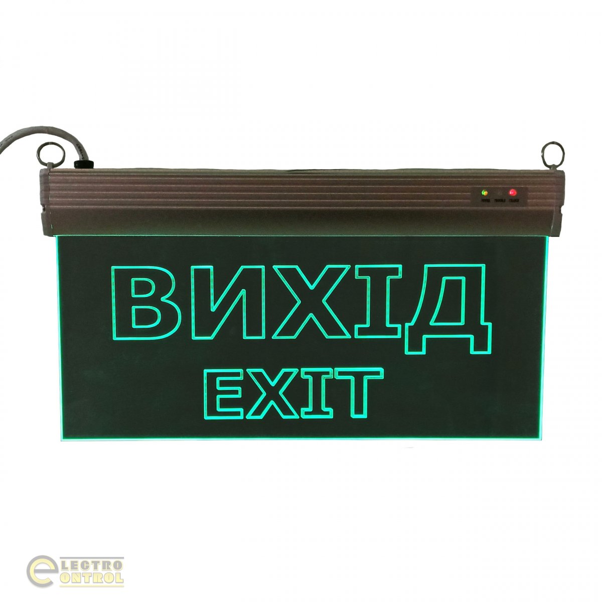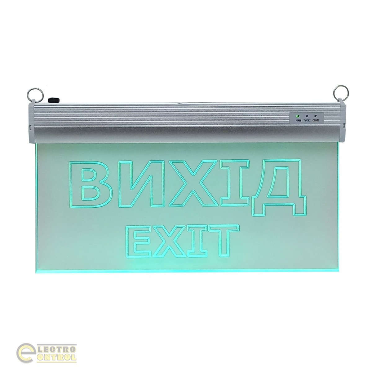 - Світильники-вказівники «ВИХІД / EXIT» зі скляним або акриловим дисплеєм