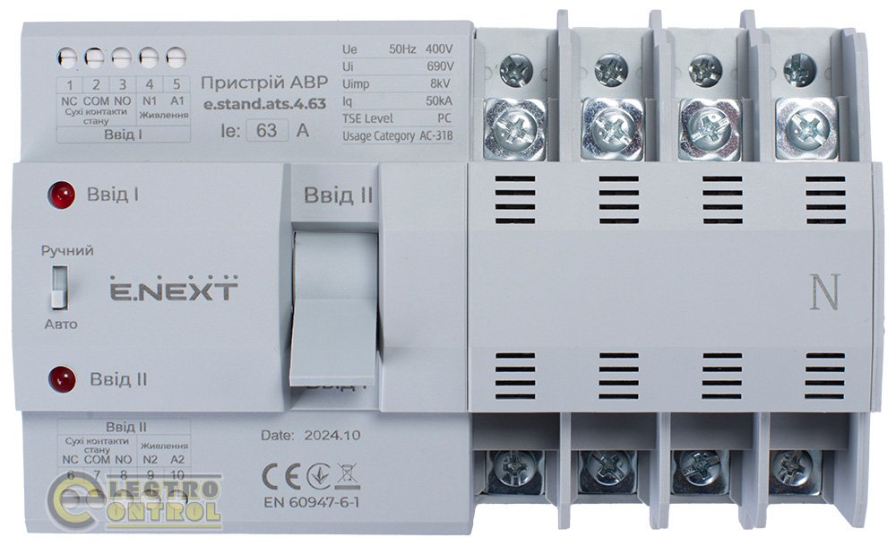 Пристрій АВР Enext s088002 модульний e.stand.ats.4.63 4p 63А