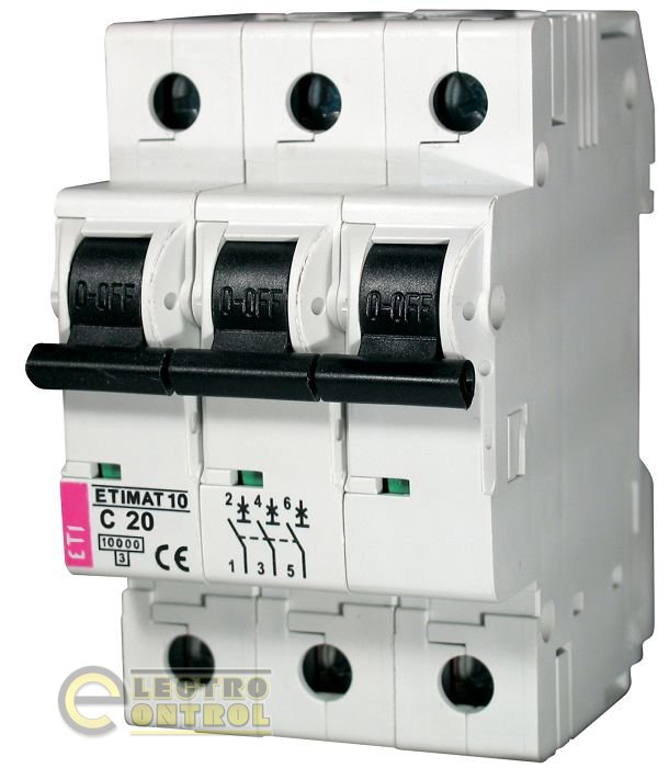 Серія автоматичних вимикачів із функцією захисту від струмів короткого замикання ETIMAT 10 3p C 20А призначена для використання в побутових і комунальних електромережах, а також у розподільних щитах, шафах управління тощо промислових споживачах невеликої потужності.