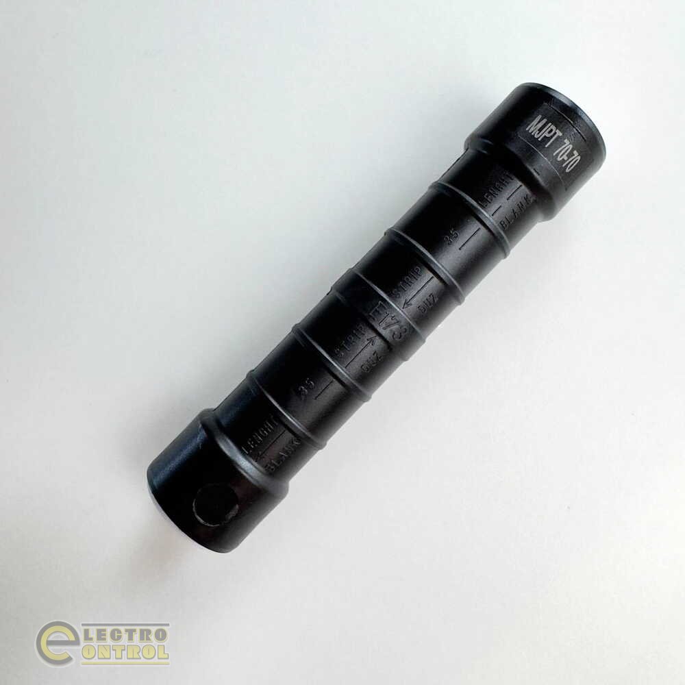 Ізольована гільза MJPT-25 від Termofit призначена для міцного й герметичного з'єднання алюмінієвих провідників у самонесучих ізольованих проводах (СІП). Це рішення підходить для анкерних опор, прольотів і з'єднань із підвищеними вимогами до герметичності.