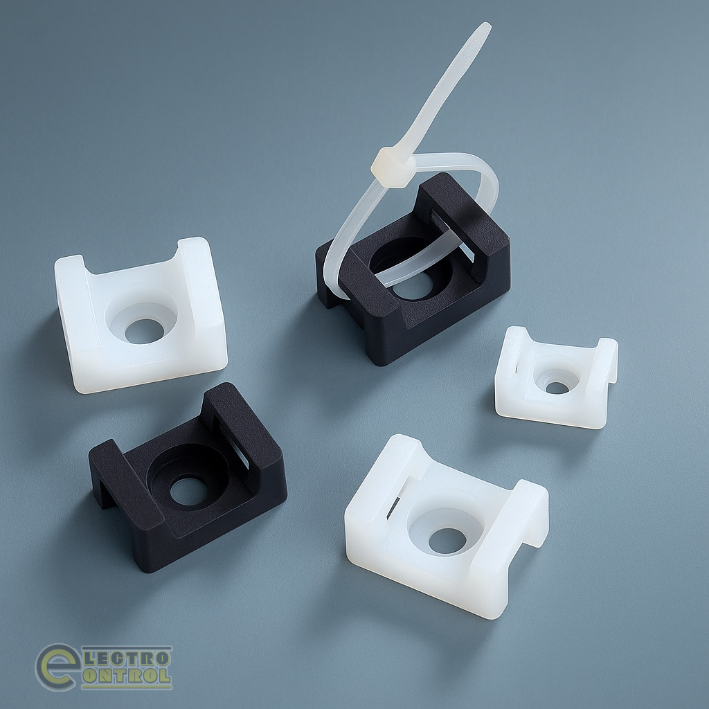 Використовуються для надійного кріплення кабелів і джгутів до рівних поверхонь за допомогою кабельних стяжок і кріпильних елементів.