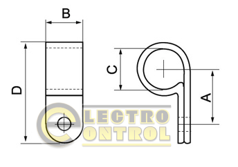 - Плоскі скоби з цвяхом — підходять для фіксації плоских кабелів шириною від 4 до 9 мм. Мають пластиковий корпус і сталевий цвях, який легко забивається в дерево або гіпс.
