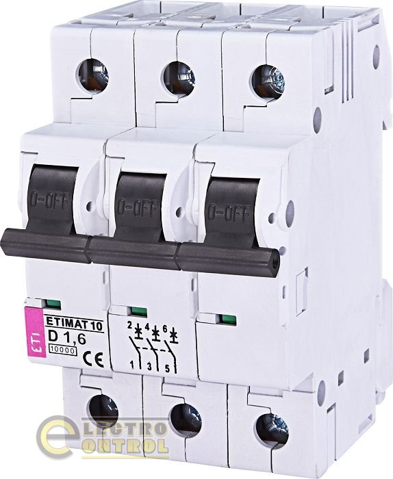 Серія автоматичних вимикачів із функцією захисту від струмів короткого замикання ETIMAT 10 3p D 1,6А призначена для використання в побутових і комунальних електромережах, а також у розподільних щитах, шафах управління тощо промислових споживачах невеликої потужності.