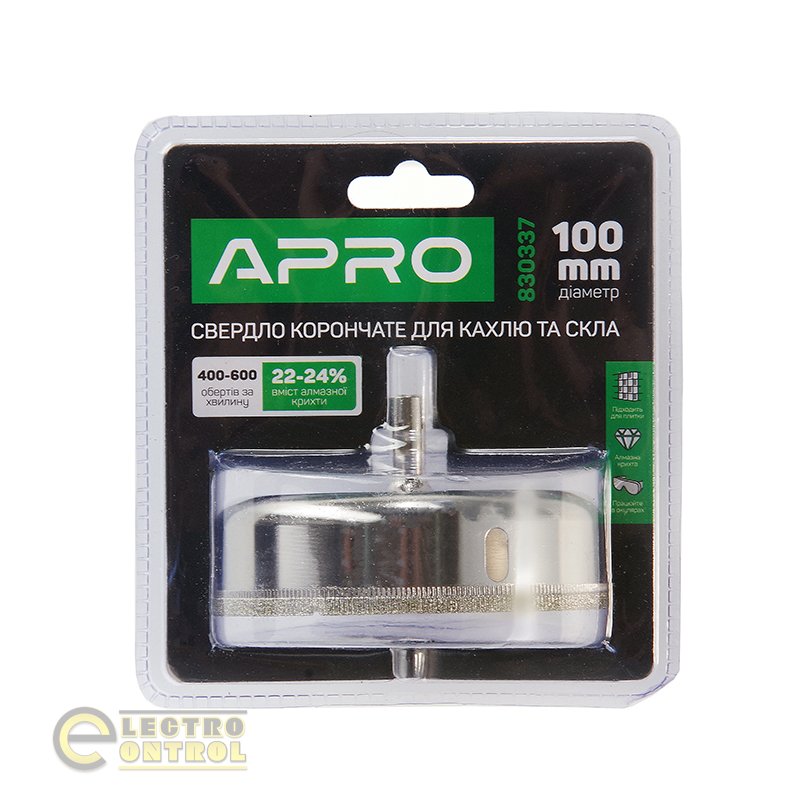 Свердло трубчасте з алмазним напиленням для скла та кахлю Ø 100мм APRO 830337