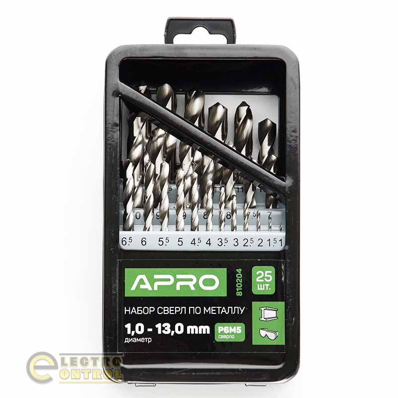 Набір свердел по металу APRO Р6М5 810204 1,0–13,0мм 25шт метал бокс