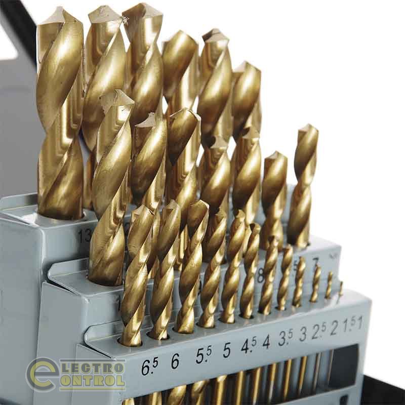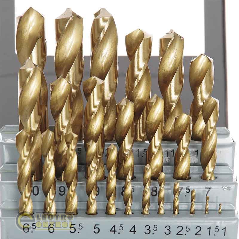 - Свердла по металу — виготовлені з швидкорізальної сталі HSS (P6M5, 6542, M35), зокрема кобальтові варіанти для роботи з нержавійкою та твердими сплавами.