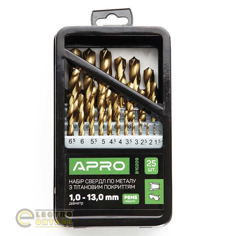 Набір свердел по металу APRO Р6М5 титан 810209 1,0–13,0мм 25шт метал бокс