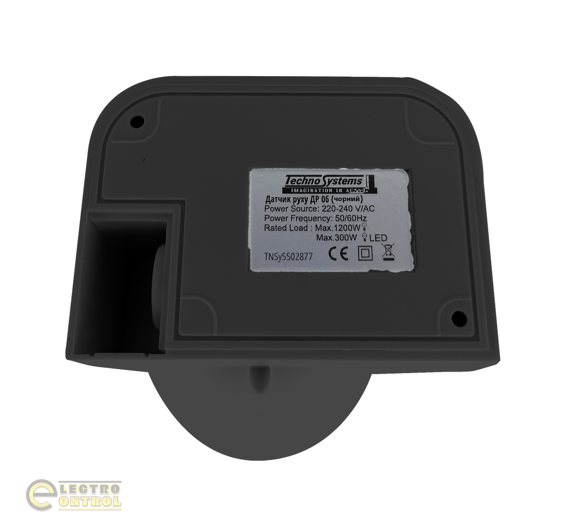 Датчик руху Technosystems ДР 06 1200Вт. TNSy5502877 чорний 180град. 12м. IP44