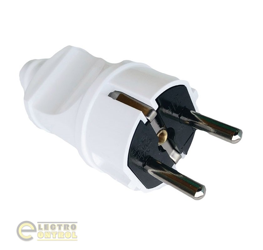 Вилка В 16 євро з заземленням Technosystems біла пряма 10А TNSy5000068