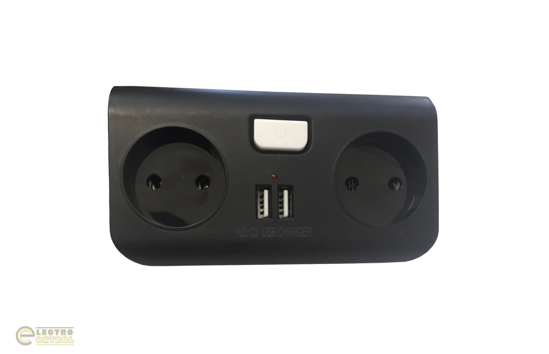 Лінійна подвійна колодка з 2 USB 1A Technosystems 1А TNSy5000916