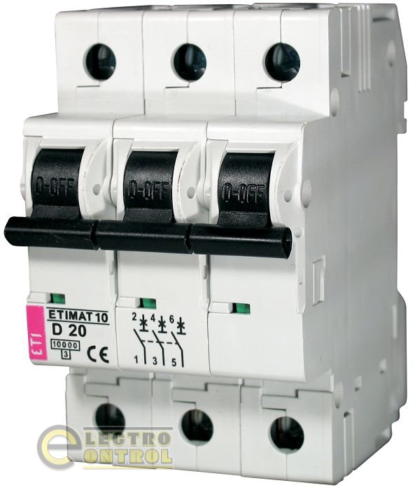 Серія автоматичних вимикачів із функцією захисту від струмів короткого замикання ETIMAT 10 3p D 20А призначена для використання в побутових і комунальних електромережах, а також у розподільних щитах, шафах управління тощо промислових споживачах невеликої потужності.