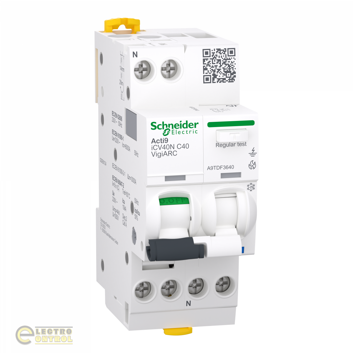 Пристрій захисту від дугового замикання з функцією автоматичного вимикача диференційного струму Schneider-Electric A9TDF3640 Acti9 iCV40N VigiARC 1P+N 40A C 30мА A-SI 6 кА
