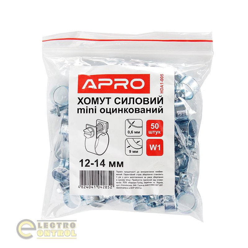 Хомут силовий Mini оцинкований APRO HDA1-005 W1 12-14 (пач. 50 шт)