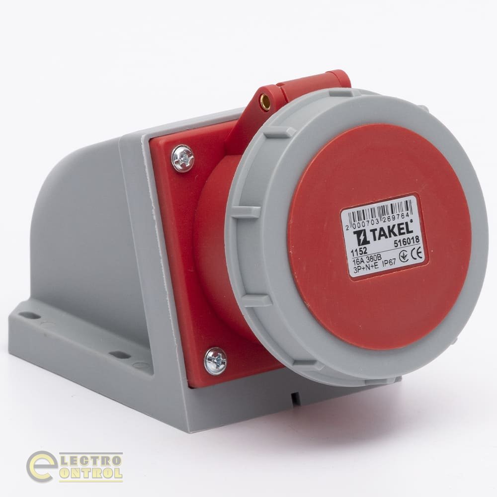 Розетка Takel 516018 стаціонарна зовнішня 1152 16А 380В 3Р+N+Е IP67 Argent