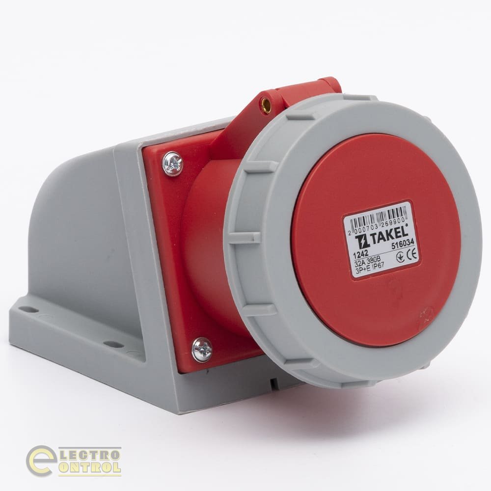 Розетка Takel 516034 стаціонарна зовнішня 1242 32А 380В 3Р+Е IP67 Argent