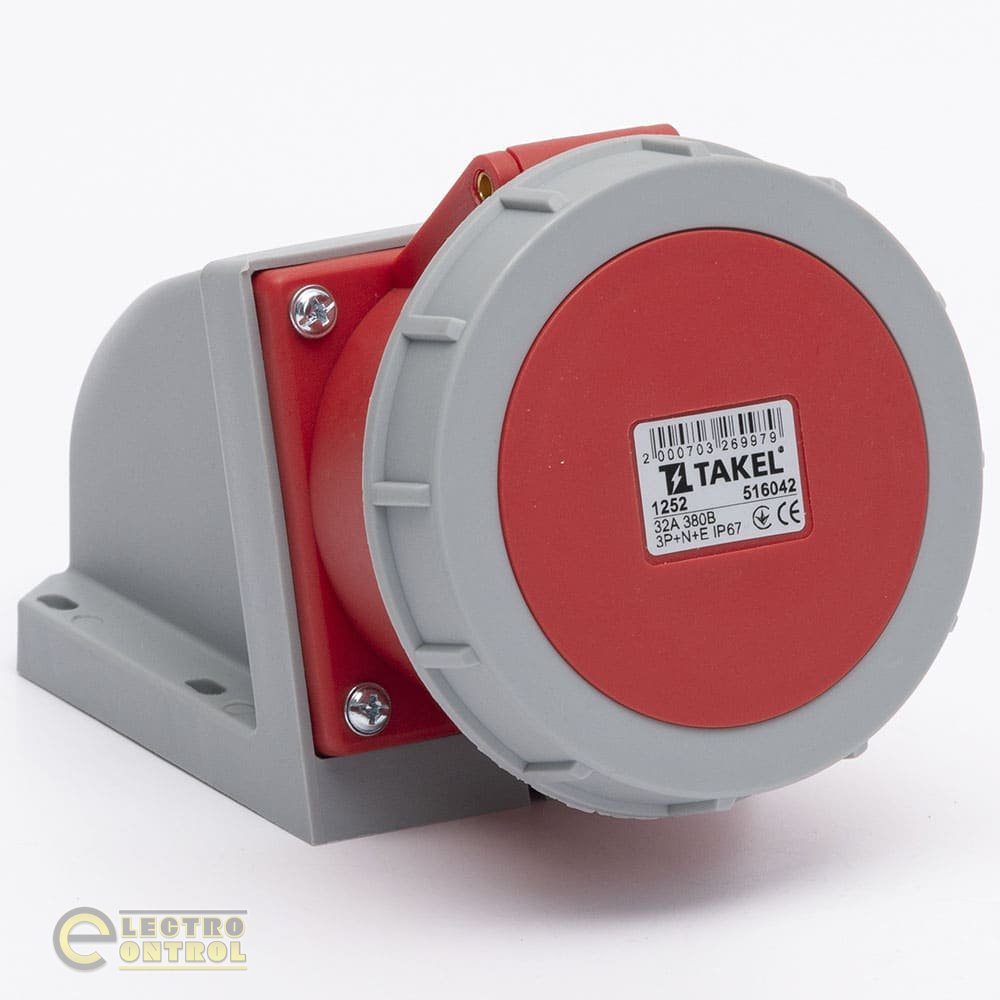 Розетка Takel 516042 стаціонарна зовнішня 1252 32А 380В 3Р+N+Е IP67 Argent