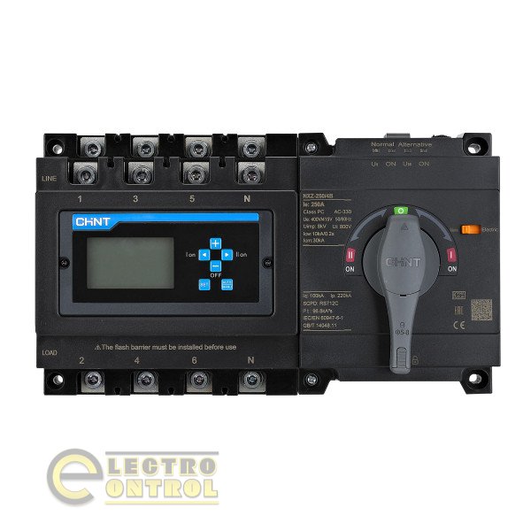 Моноблочні пристрої АВР (автоматичного введення резерву) на базі моторизованих перемикачів навантаження СHINT NXZ-250/4В 250A забезпечують автоматичне перемикання навантаження на резервне джерело живлення при відключенні основного. Оснащені інтерфейсом RS485 для передачі даних, що дозволяє дистанційно керувати АВР, змінювати налаштування, передавати інформацію про параметри мережі та отримувати сигнали про аварійні ситуації та стан АВР.