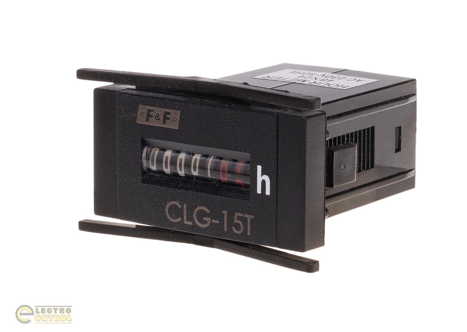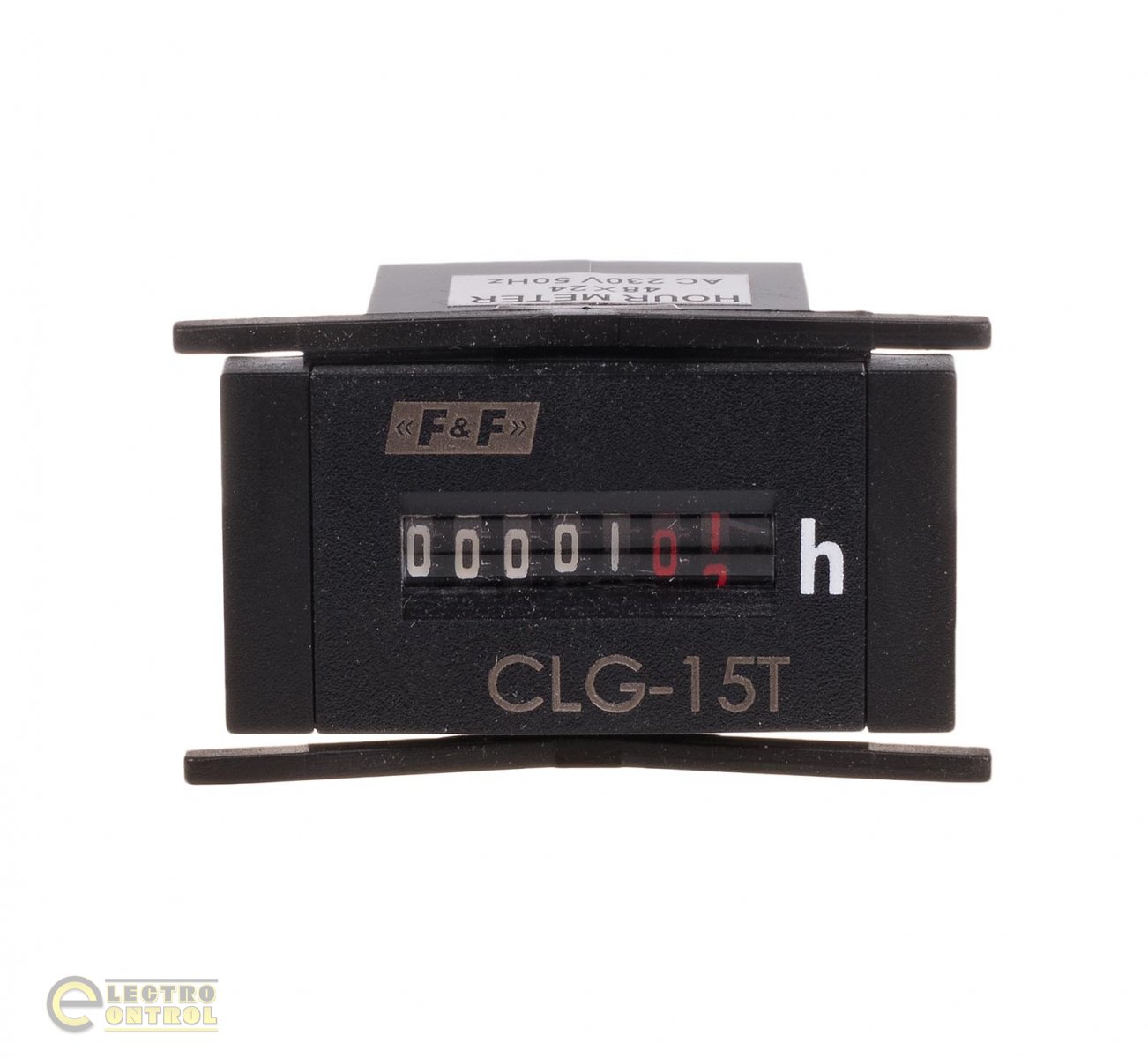 CLG-15T – це односпрямований електричний лічильник робочих годин з барабанним лічильником. Він дозволяє рахувати робочі години в діапазоні від 0 до 99999,99 (п'ять цифр + два знаки після коми), що представляють соті частки одиниці (0,01 = 36 секунд). Після досягнення максимального значення лічильник перезапускається з 0.