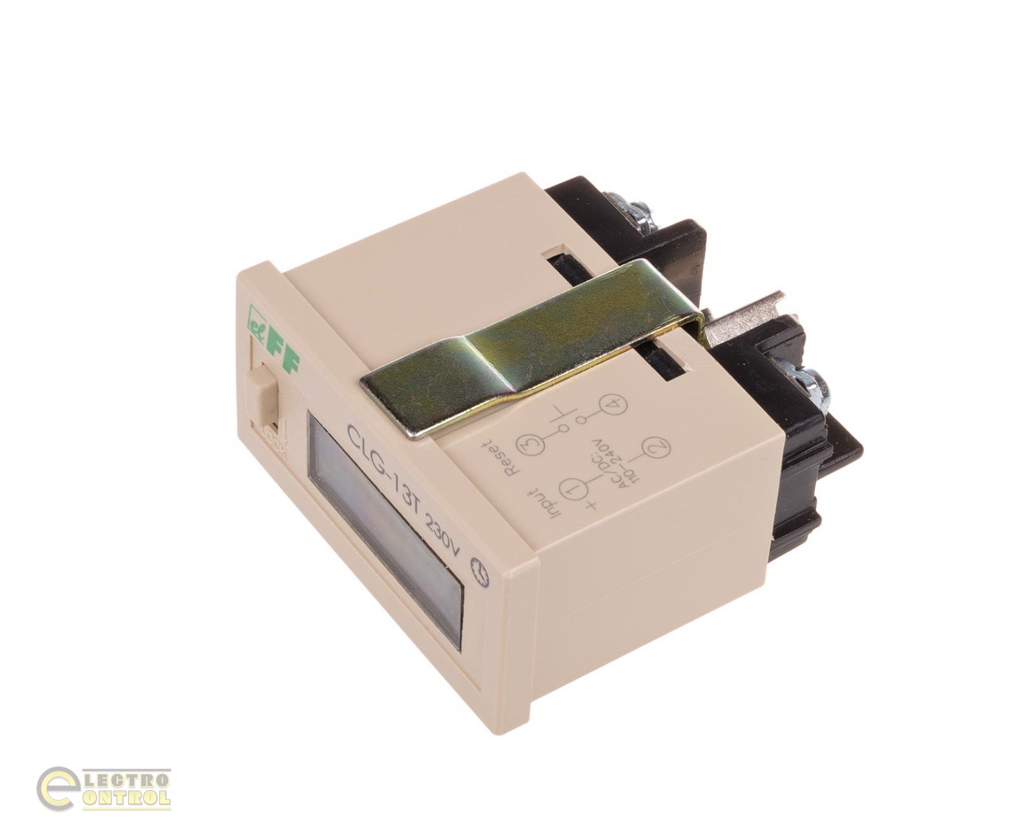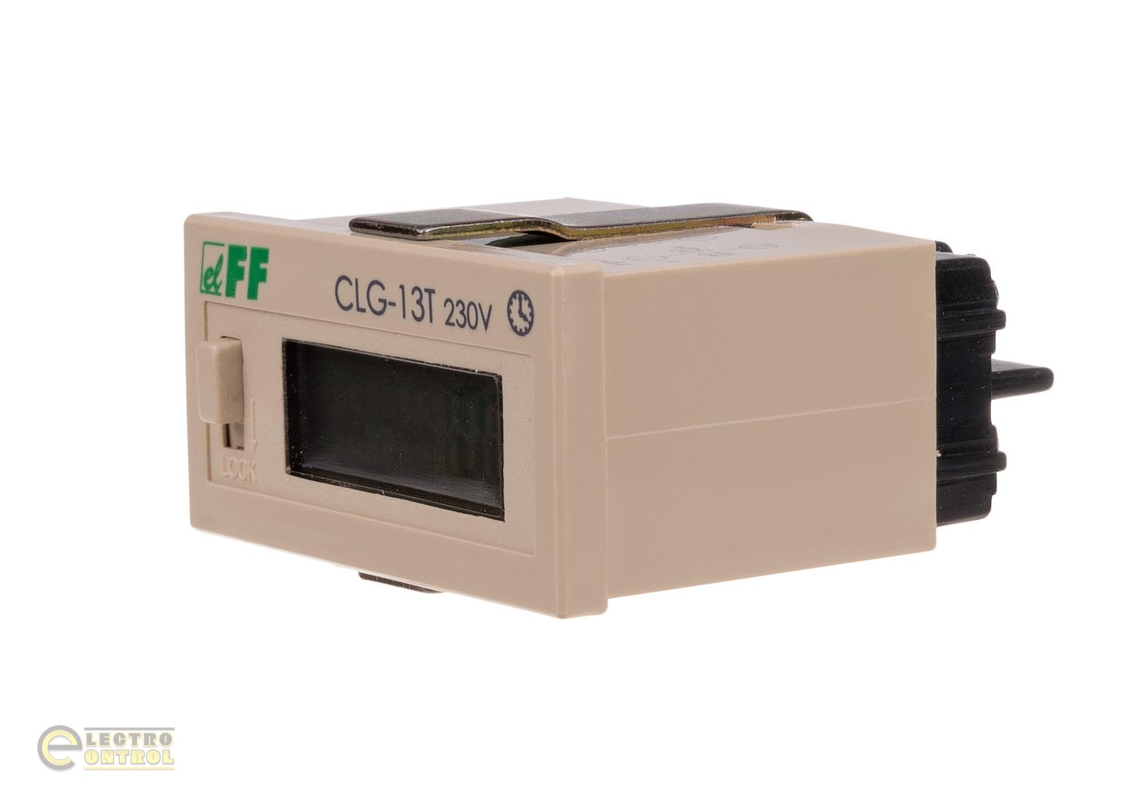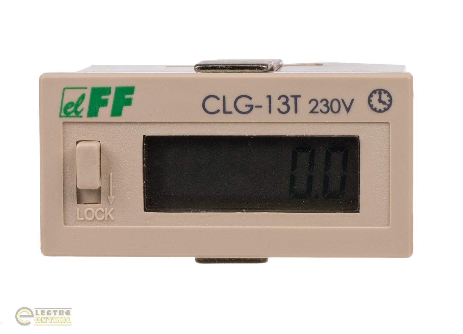 Дія: CLG-13T є електронним, однонаправленим лічильником, який має можливість рахувати години роботи в діапазоні від 0 до 99999,9 (п`ять цифр + одна після коми). Містить обнулюючий вхід RESET для під`єднання зовнішньої кнопки та кнопку RESET на передній панелі (з можливістю її блокування).