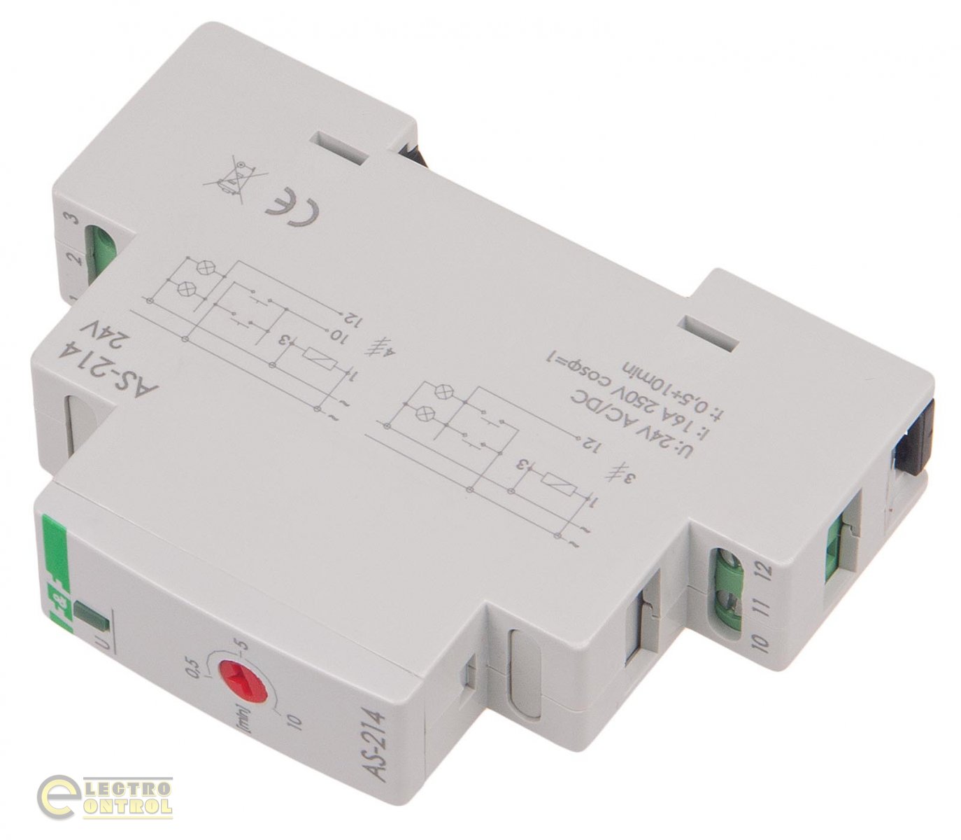 Призначення: реле сходове AS-214 призначене для підтримання ввімкненим освітлення сходових кліток, коридорів та інших об`єктів протягом визначеного часу.