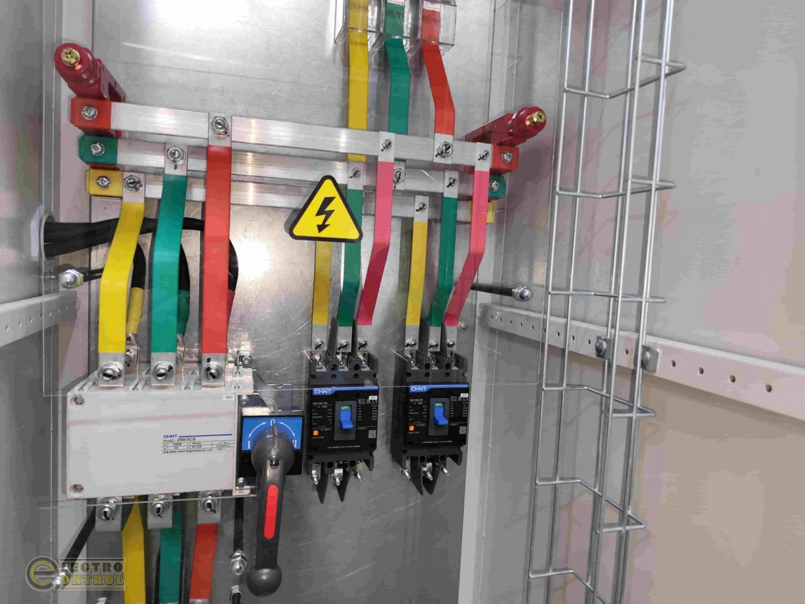Розподільчий щит ЩРс-250А призначений для ручного керування живленням навантаження з двох незалежних джерел електроенергії з можливістю роботи через інвертори та пряме живлення від мережі або ДГУ.