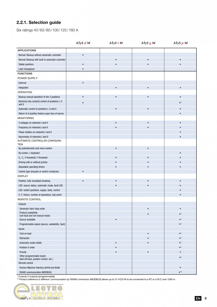 Соленоїдний механізм дозволяє здійснювати перемикання з мінімальною затримкою, що робить ATyS g M ефективним рішенням для аварійного резервування. Для задач моніторингу передбачена можливість підключення комунікаційних модулів, зокрема інтерфейсу RS485.