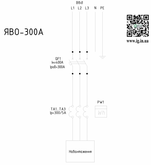 Схема ввідно-облікового ящика ЯВО-300А (ШО-300А):