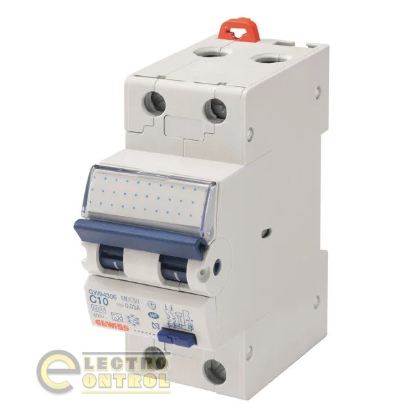 Диференціальний автоматичний вимикач Gewiss GW94306 MDC60 1P+N C10 6кA A/0.03 2M