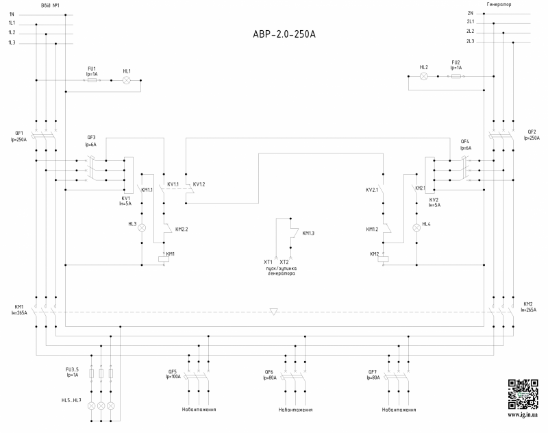 Схема керування автоматичним введенням резерву АВР-2.0-250А: