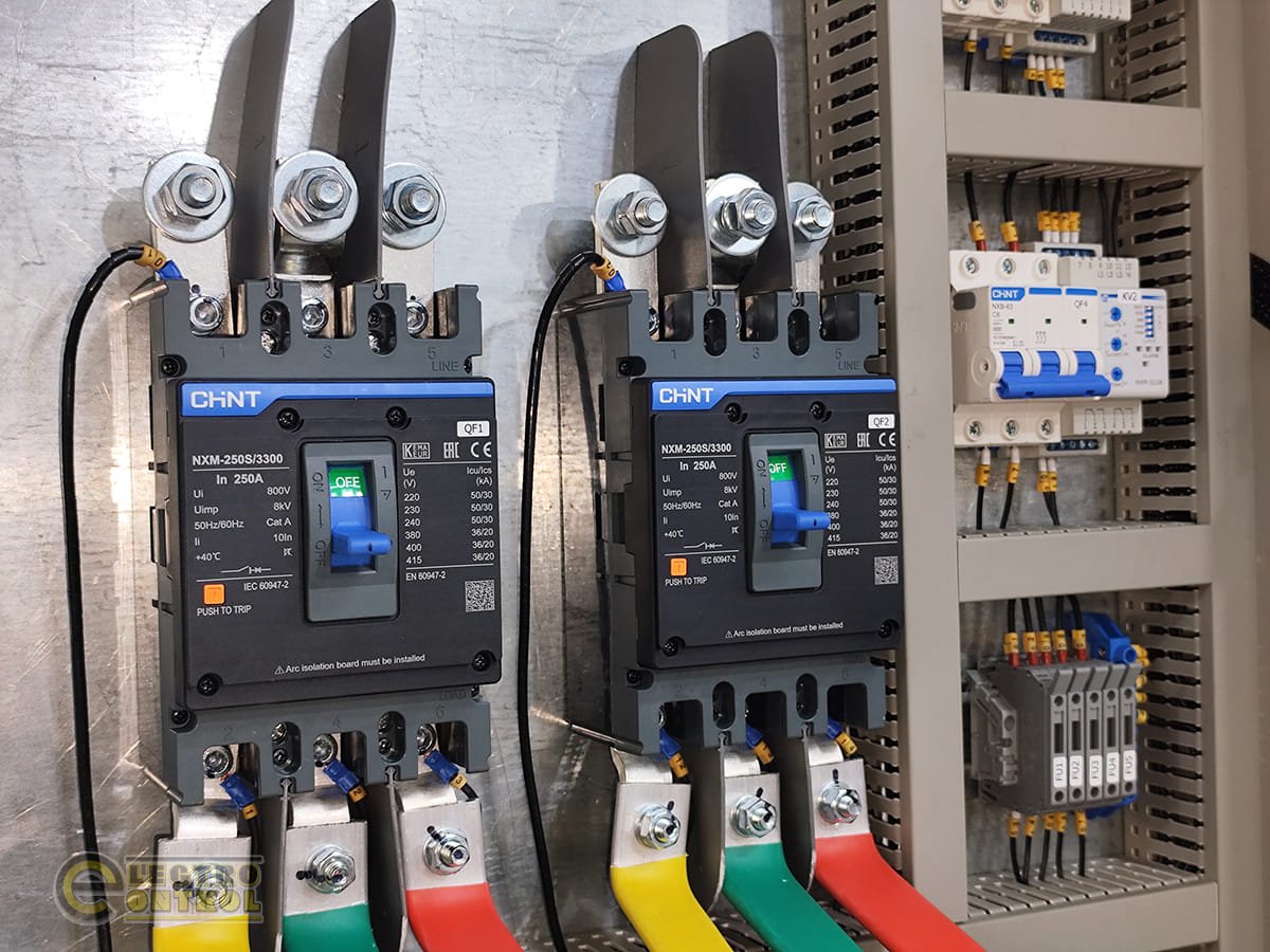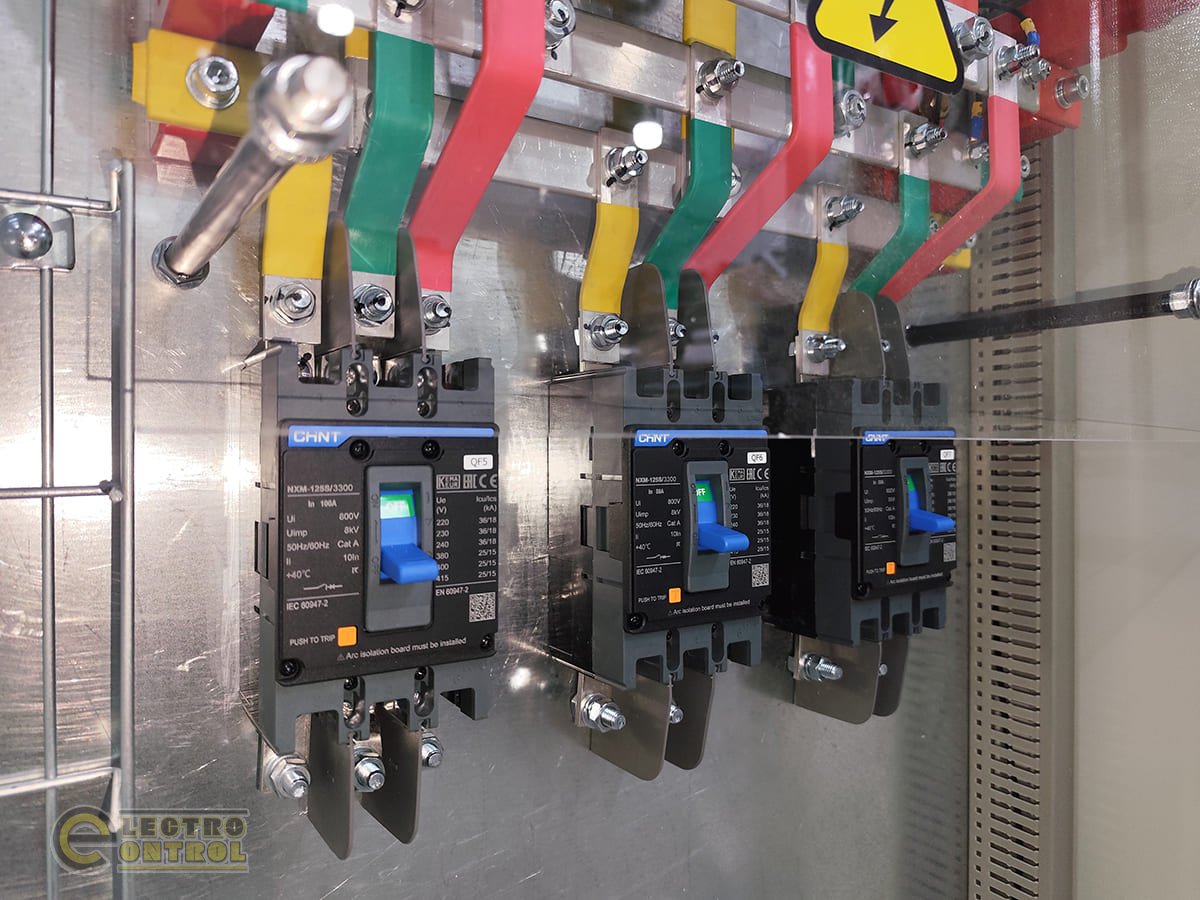 • Три відхідних промислових автоматичних вимикачів для підключення навантаження