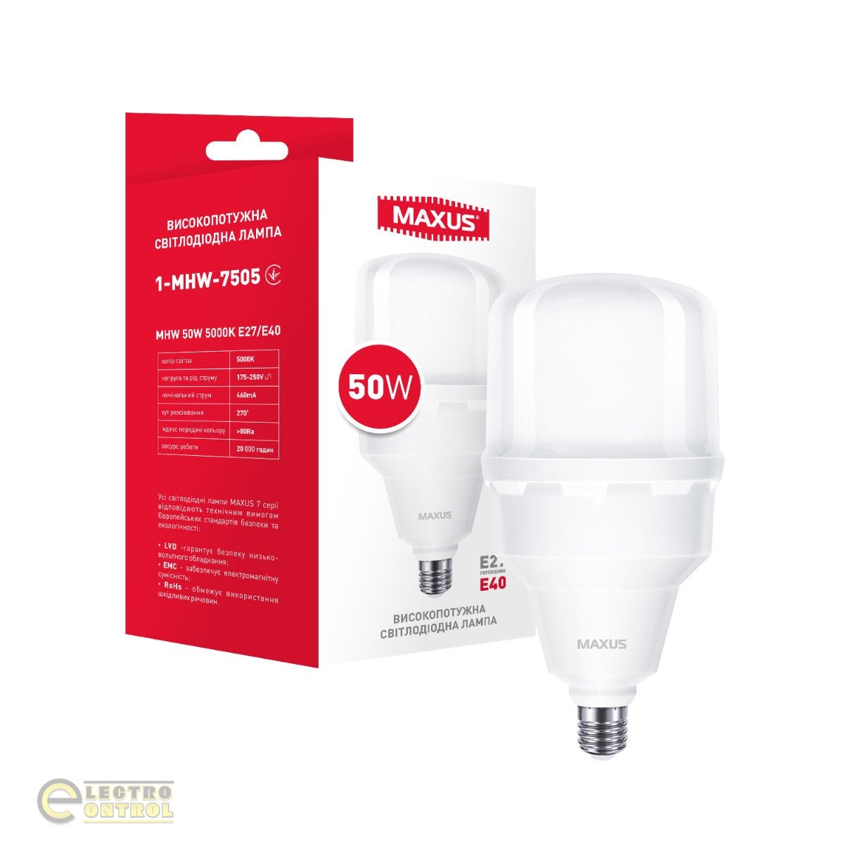 Лампа світлодіодна високопотужна MAXUS 1-MHW-7505 HW 50W 5000K E27/E40