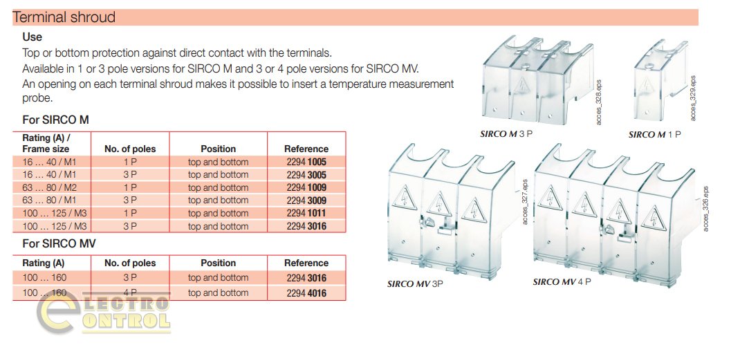 Однополюсна клемна кришка (заглушка) для захисту від прямого дотику. Встановлюється зверху або знизу вимикача Sirco M номіналом 16–40 А