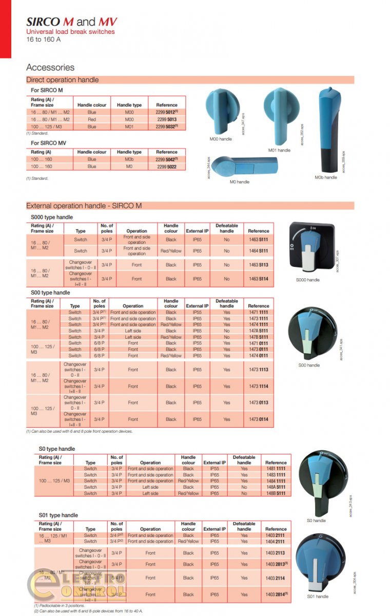 Синя рукоятка типу MDO для прямого керування апаратом. Встановлюється безпосередньо на вимикачі Sirco M номіналом 16–80 А