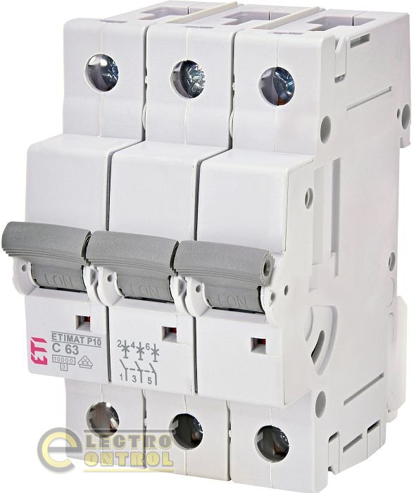 Серія автоматичних вимикачів із функцією захисту від струмів короткого замикання ETIMAT P10 3p C 63А призначена для використання в побутових і комунальних електромережах, а також у розподільних щитах, шафах управління тощо промислових споживачах невеликої потужності.