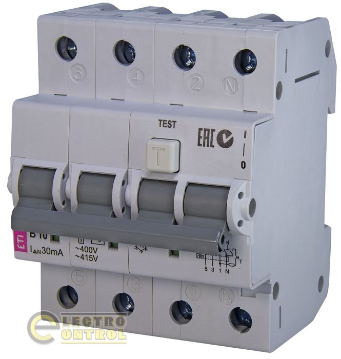 На сайте ecshop (Электроконтроль) Вы можете ознакомиться и купить дифференциальный автоматический выключатель KZS-4M 3p+N B 10/0,03 тип AC (6kA) 2174002 ETI.