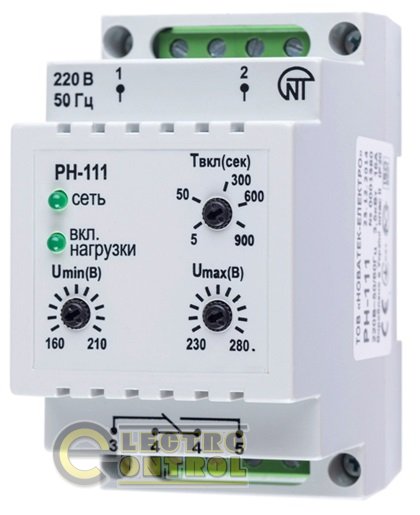На сайте eсshop (Электроконтроль) Вы можете подобрать и купить реле напряжения РН-111. Прибор предназначен для защиты и мгновенного отключения однофазной нагрузки (220 В, 50 Гц) бытового и промышленного оборудования мощностью 3,5 кВт (16А), при сильных колебаниях в электрических сетях с последующим повторным включением при нормализации параметров. Если мощность ниже 3,5 кВт питание от сети отключается выходными контактами реле, выше 3,5 кВт с помощью магнитного пускателя , не входящего в комплект реле РН-111.