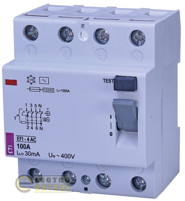 Пристрій захисного відключення (ПЗВ) EFI-4 100/0,03 AC (10kA) 2062151 ETI розроблене для захисту людини від поразки електричним струмом у випадку його дотику, прямого або непрямого, до оголеним проводам або несправним електричним приладам. Також диференціальне реле ETI EFI допоможе уникнути пожежі у випадку несправності електропроводки. Застосовувати даний пристрій необхідний у мережі з типами схем заземлення TN-S, TN-C, IT.