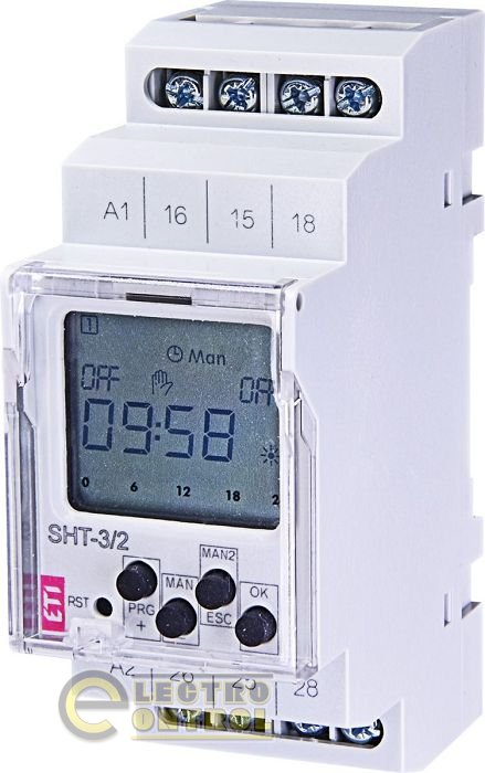 На сайті ecshop (Електроконтроль) Ви можете ознайомитися й купити програмується цифрове реле SHT-3/2 230V AC (2x16A_AC1) 2470057 ETI. Програмуються цифрові таймери SHT-3/2 230V AC призначене для дистанційного керування висвітленням і різними пристроями, із прив'язкою до реального часу.