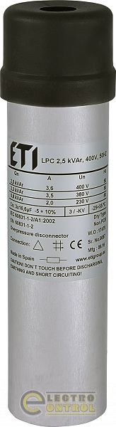 - Найменування LPC 2,5 kVAr, 400V, 50Hz