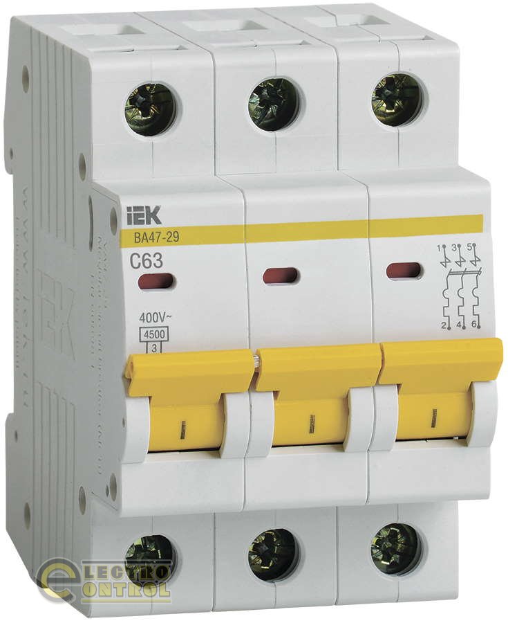 Автоматичний вимикач UEK (IEK) ВА47-29 MVA20-3-063-C 3p C 63А 4,5 кА AC
