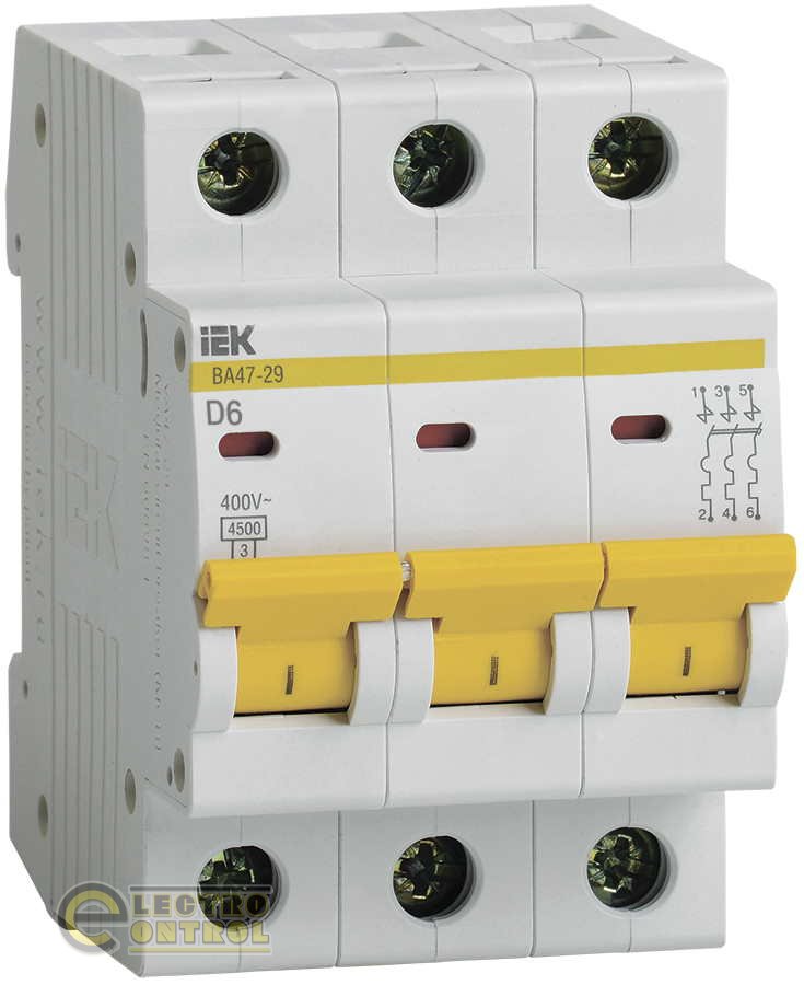 Автоматичний вимикач UEK (IEK) ВА47-29 MVA20-3-006-D 3p D 6А 4,5 кА AC