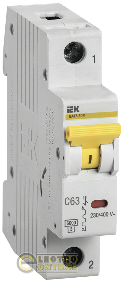 Автоматичний вимикач UEK (IEK) ВА47-60 MVA41-1-063-C 1p C 63А 6 кА AC