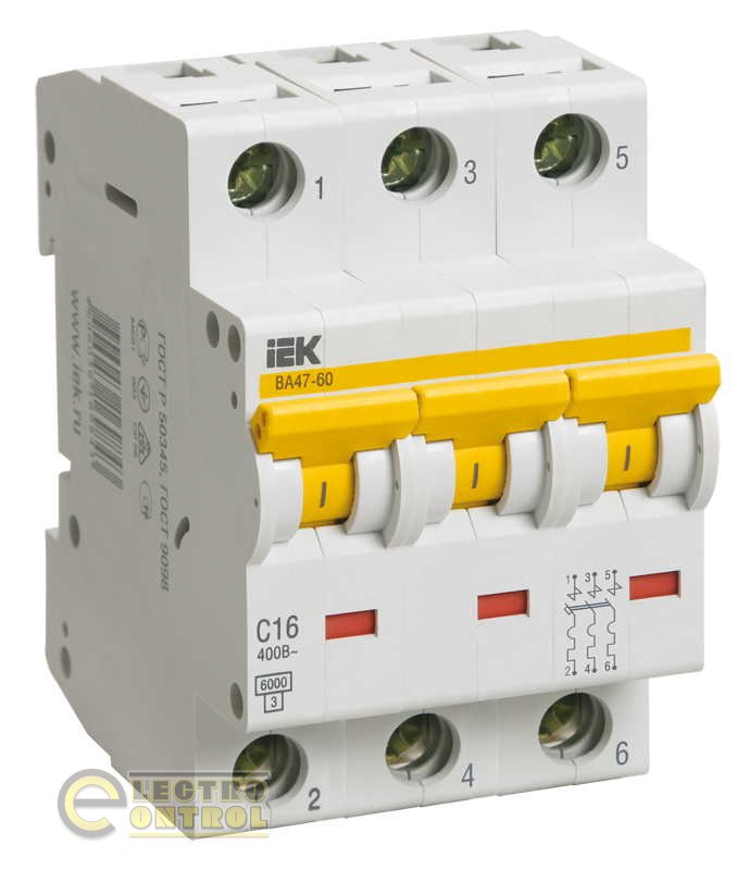 Автоматичний вимикач UEK (IEK) ВА47-60 MVA41-3-016-D 3p D 16А 6 кА AC
